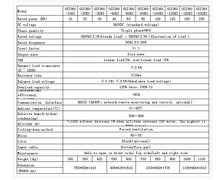 GSI three phase series inverter is off-grid inverter designed and manufactured for new energy power system, mainly apply for PV power station, wind, light, oil,storage complementary generating system and the filed of Photovoltaic power system. Especially need three-phase four wires AC place. We use the new energy power generation with high inverter efficiency and advanced performance to provide absolute reliability for Traffic inconvenience, harsh mountains, pasturing area, border defence,island,etc without electricity area,and can adopt large power three-phase inverter to take the collective power supply mode for no power area.